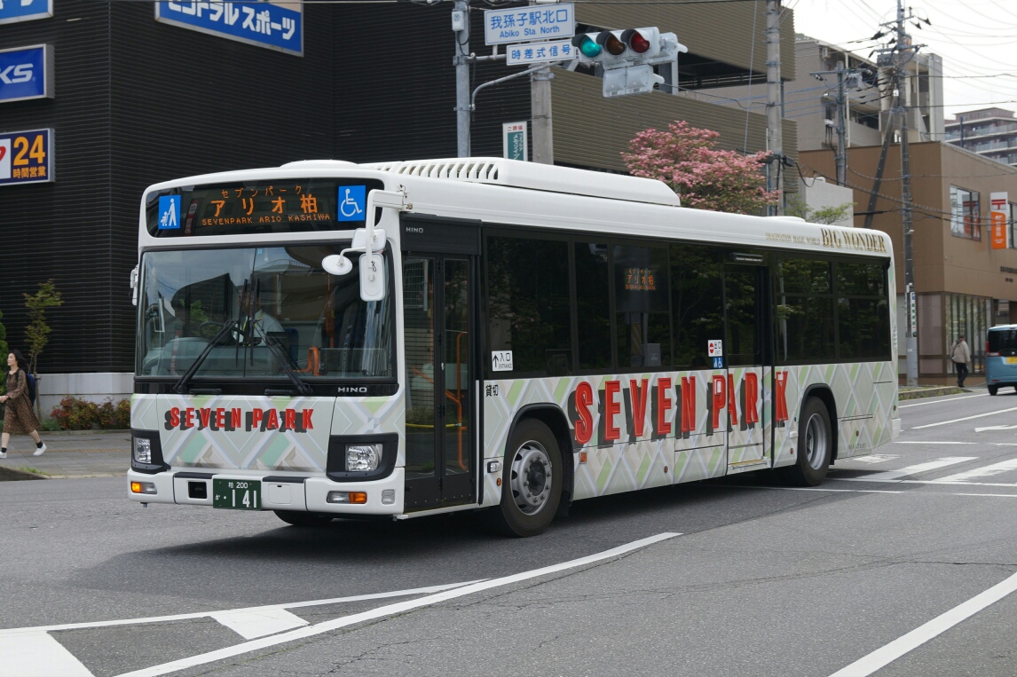 今井タクシー141号車は、2016年4月25日にグランドオープンを迎えるセブンパークアリオ柏と我孫子駅北口を結ぶ無料送迎バスに使用されている車両です。グランドオープンは4月25日ですが、バス自体は4月20日より運行されています。