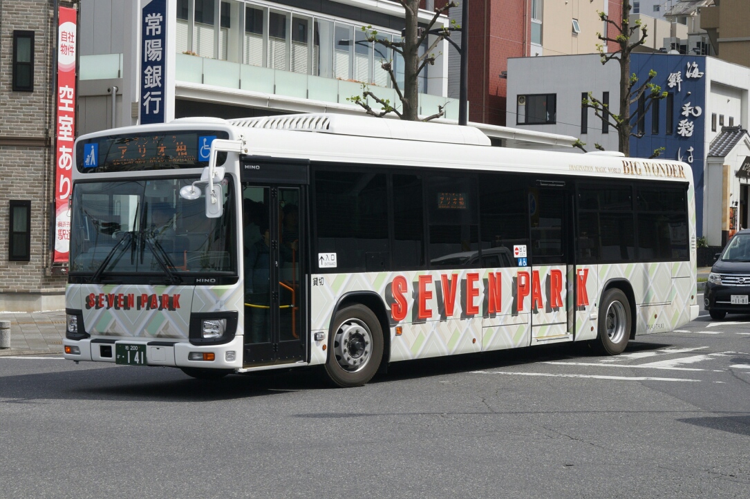 今井タクシー141号車は、2016年4月25日にグランドオープンを迎えるセブンパークアリオ柏と我孫子駅北口を結ぶ無料送迎バスに使用されている車両です。グランドオープンは4月25日ですが、バス自体は4月20日より運行されています。