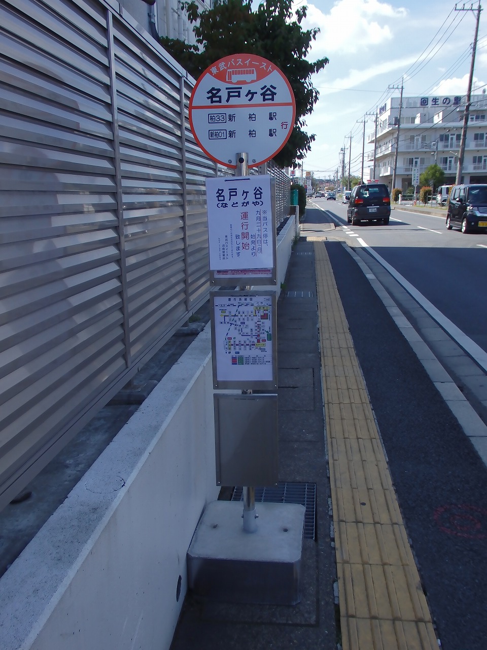 http://www.tobu-bus.com/pc/images/data/20140922165324.pdfここからは、柏33・新柏01系統の新設区間のバス停を新柏駅から名戸ヶ谷まで順にみていきたいともいます。まずは、新柏駅から。