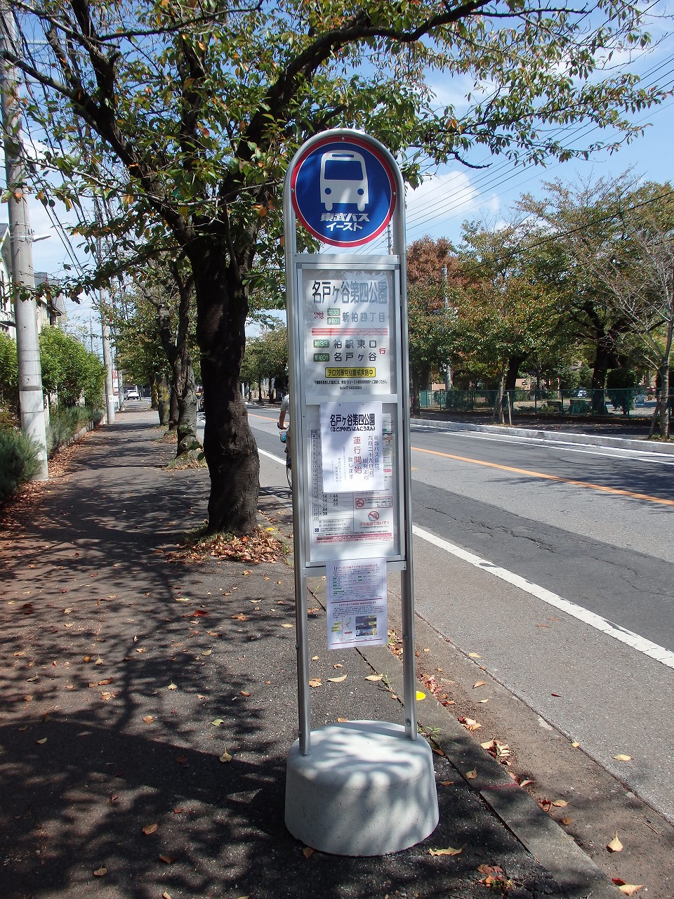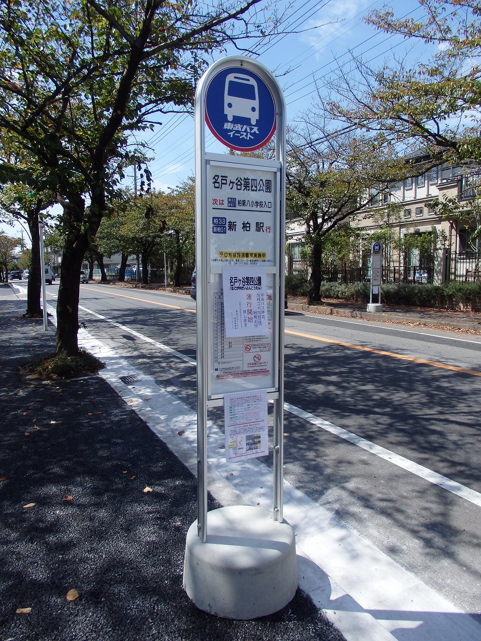 柏第八小学校入口の次は、名戸ヶ谷第四公園。その名の通り、公園の目の前にバス停があります。