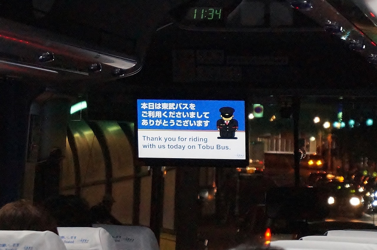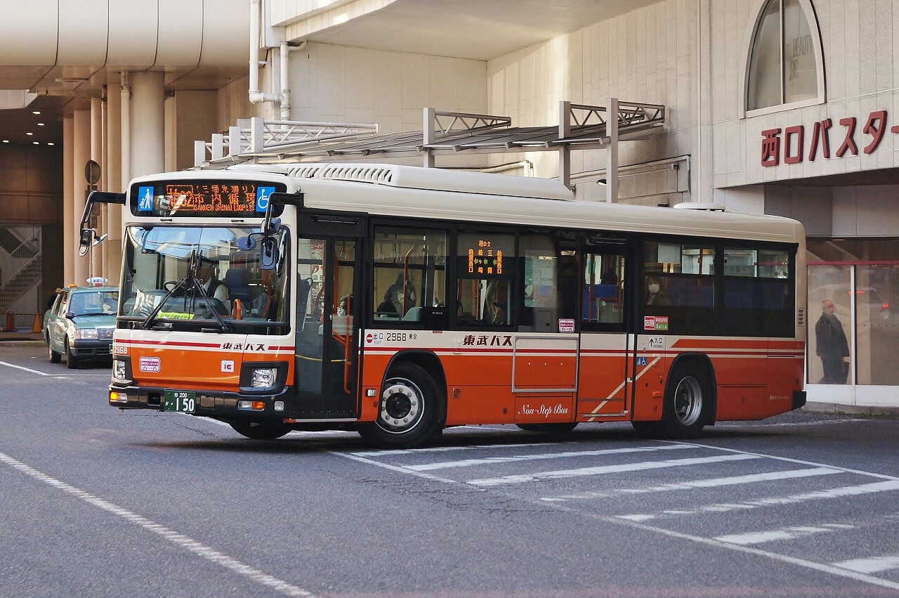 都市部でよく見られる広告付きのガラス張りの上屋で、ベンチも設置されていました。東武バスイースト管内では初採用と思われます。
