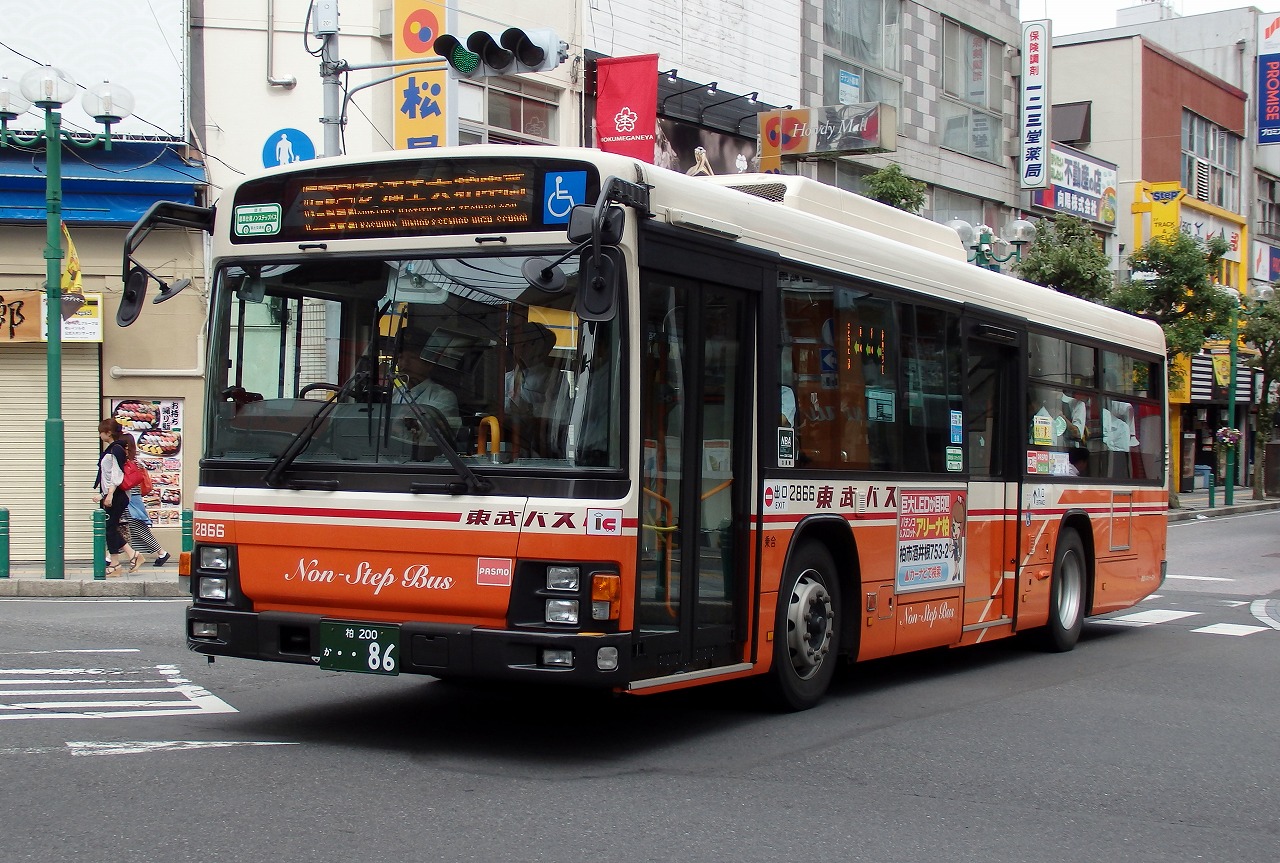 2866号車は、沼南営業所所属の2012年式(LKG-LV234L3)のエルガです。東武バスグループの路線車では、2012年式より車体の社名表記が”東武”から2002年式以前と同様の”東武バス”表記へと変更され、”東武バス”表記のエルガが初お目見えしました。この2866号車と僚車の2865号車と共に東武バスイースト初の”東武バス”表記のエルガとなりました。また、翌年の投入車よりQPG代の車両となったため、東武バスイースト管内のLKG代の”東武バス”表記の車両はこの2866号車と僚車の2865号車の2台のみとなりました。